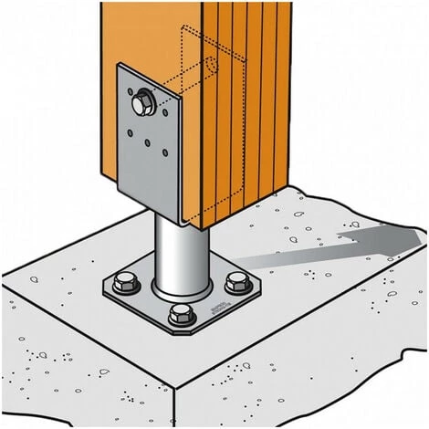 Permet d‘ancrer le poteau directement sur la dalle béton. Il ne nécessite pas de réservation et l‘assemblage peut être réalisé après le scellement de la platine.