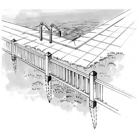 - Enfoncer le pied de poteau dans le sol en frappant bien verticalement avec une masse.